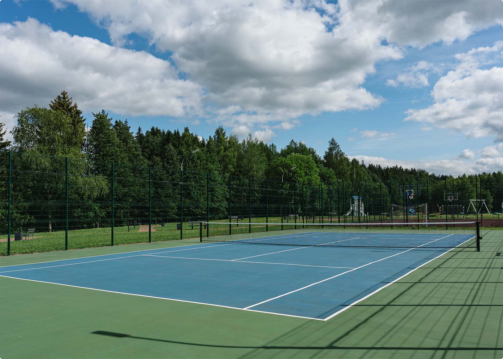 Парк, озеро, променад, тропа здоровья, спортивные площадки, теннисный корт, детская зона, пирс, пляж, клабхаус — все для комфортной жизни.