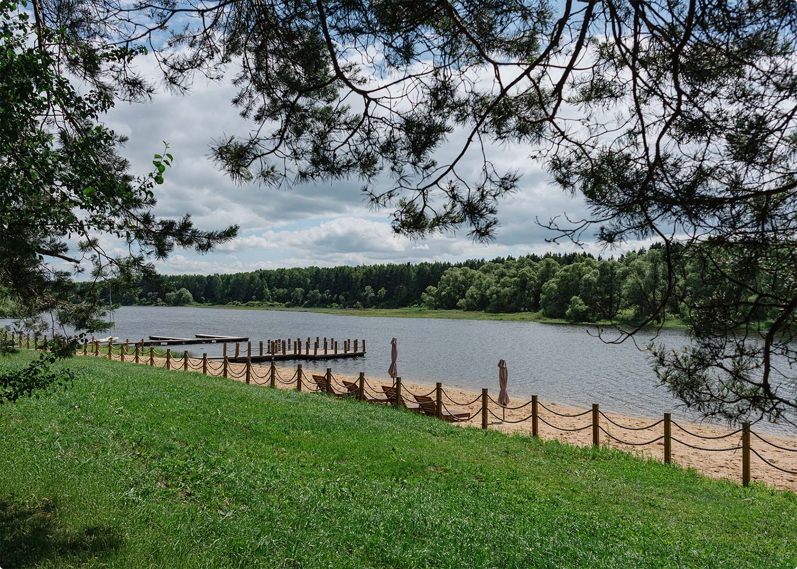 Парковая архитектура включает уличные библиотеки, очаги, зоны для йоги, спортивные и детские площадки, эко-тропы, пирс, пляж и благоустроенную набережную — всё для активного и комфортного отдыха