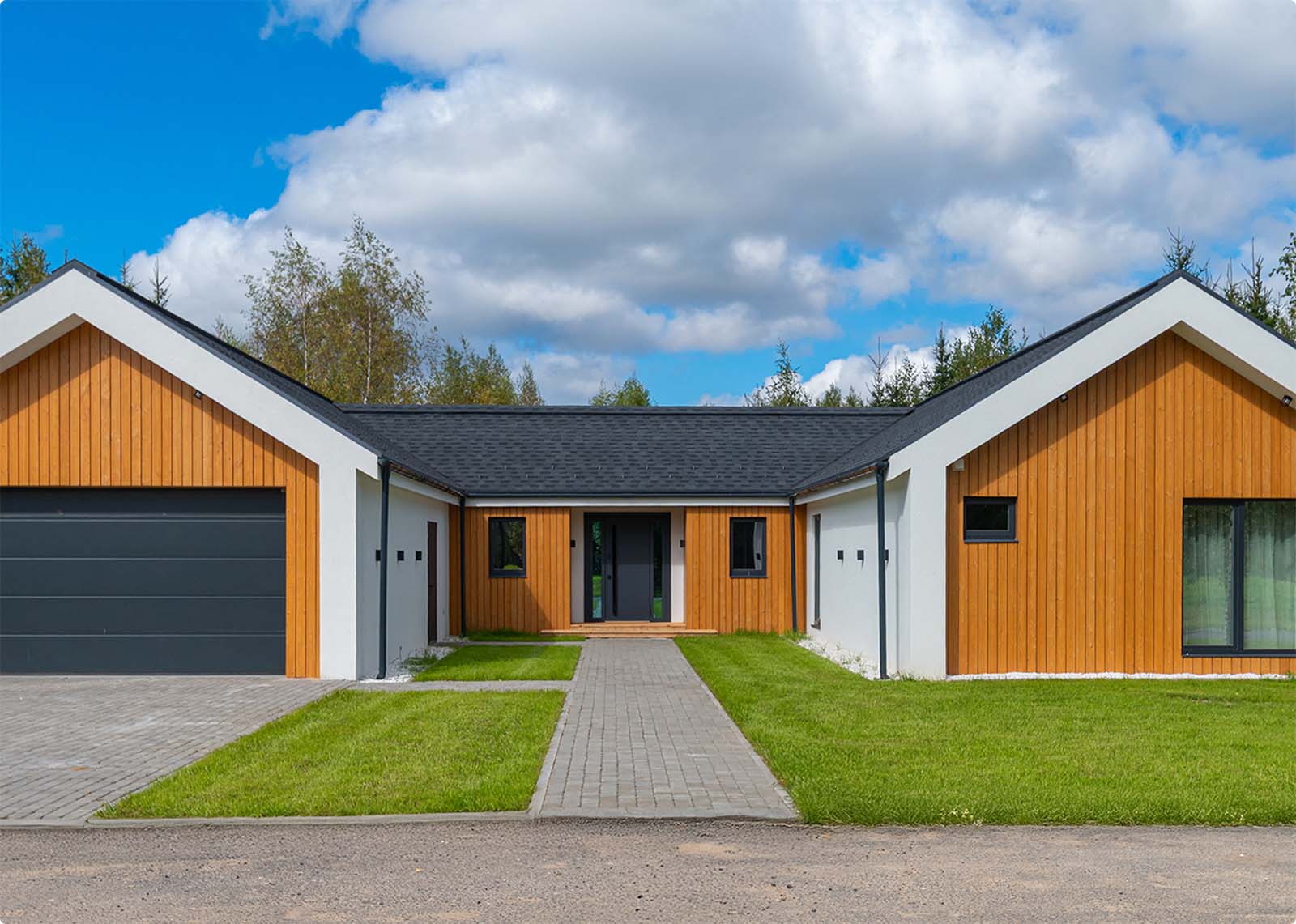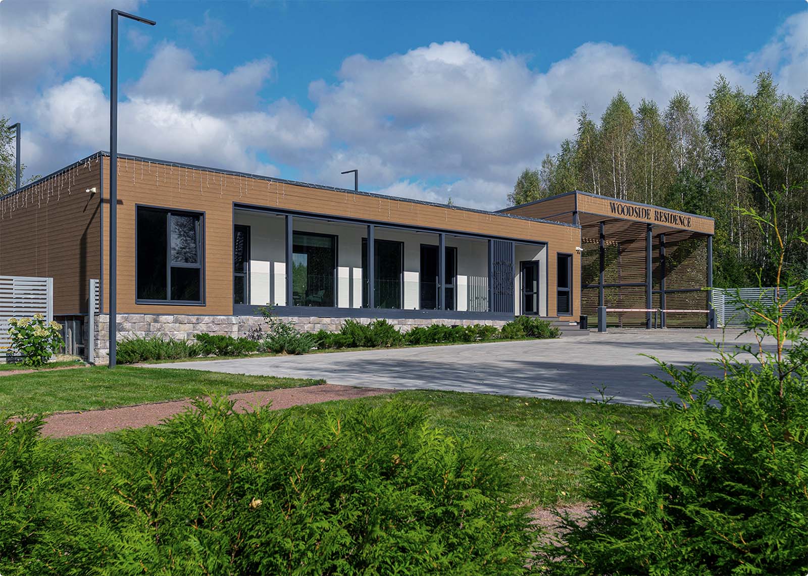Единая архитектурная концепция в современном и сдержанном дизайне создает цельный облик поселка и ощущение гармонии и баланса
