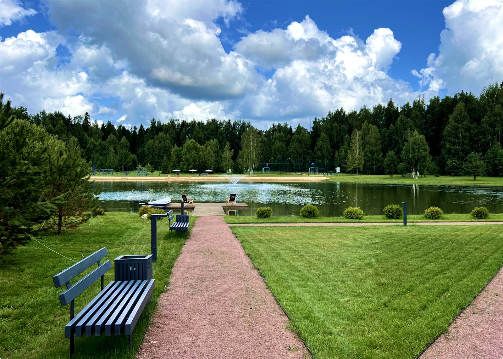 Здесь царит звучащая тишина — шелест листьев ведет по прогулочным тропам к озеру, главной точке притяжения с лучшими видами и уютными местами для встреч.